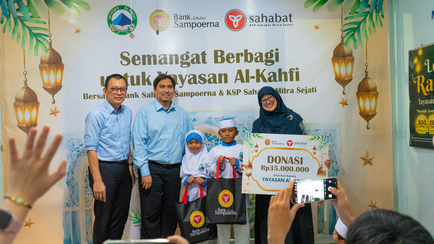 Kegiatan ini dihadiri oleh Ibu Alfiah Yuni Andari selaku Ketua Yayasan Al Kahfi Jakarta Pusat, Bapak Hendra Rahardja selaku Direktur Information Technology Bank Sahabat Sampoerna, serta Bapak Rizal Agil selaku pengurus KSP Sahabat Mitra Sejati.